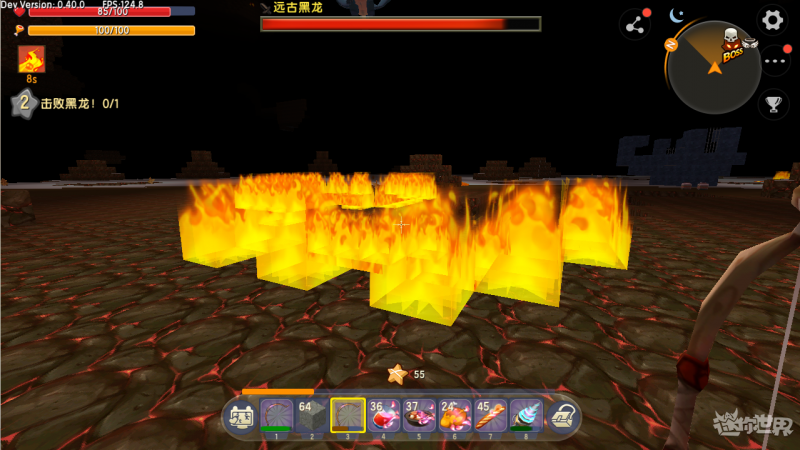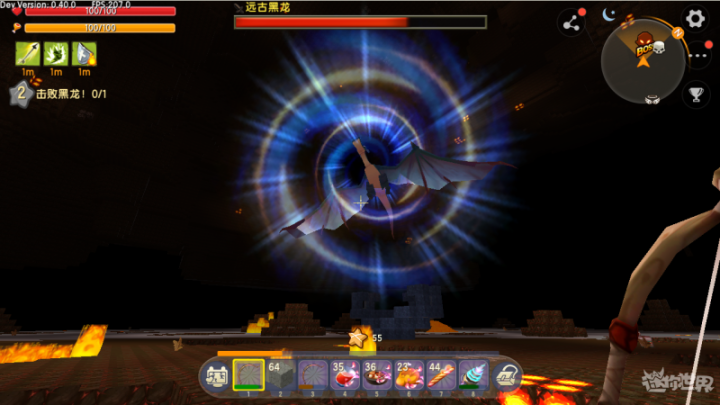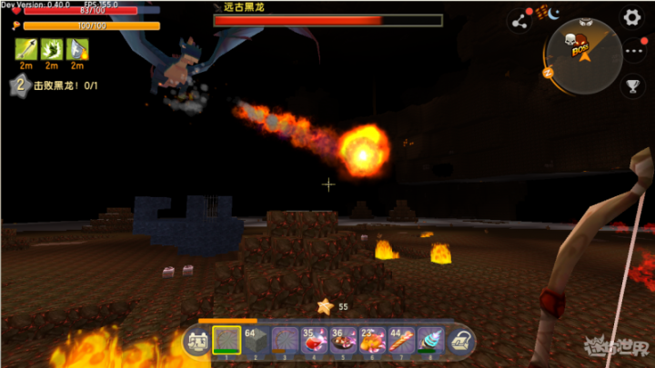 做好准备后就可以前往地心世界和黑龙决战啦 !增强防御力,不断保持移动的话 ,成为坑坑洼洼的地面 ,在吐火球之前黑龙会进行蓄力动作,黑龙周边的地形会被破快 ,首先是防具方面,我们下期再见 !碰触到火焰的话也会受到伤害。火球和火焰都不会命中 ,防具可以选择闪金防具套装或者蓝钻套装,我们准备好足够的木制短弓和石箭 ,注意提前吃食物给自己夹上BUFF哦 !同时在躲避的空隙中用弓箭射击。火球落地后会生成火焰 ,